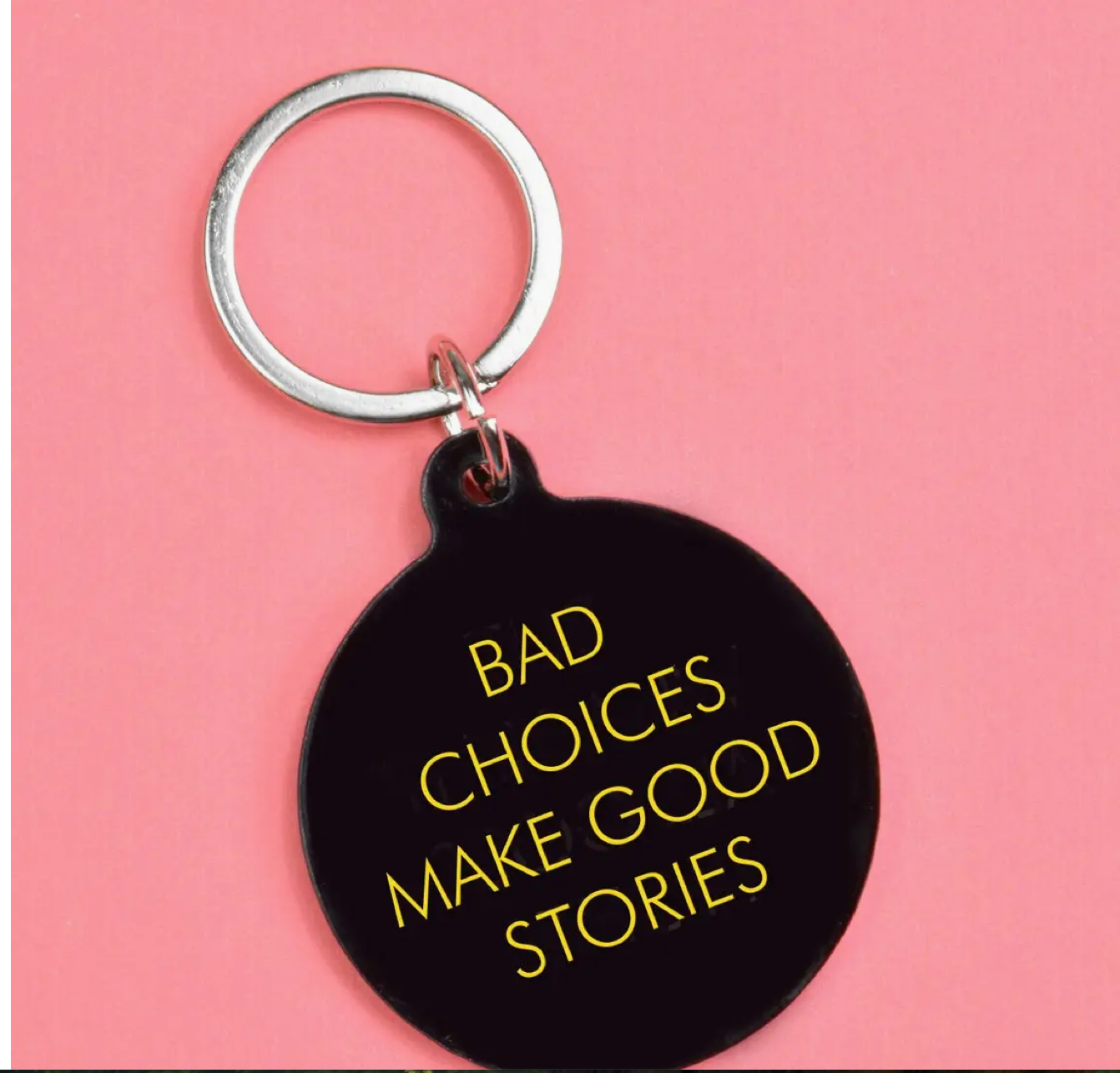 Add a cheeky twist to your keys with the Bad Choices Make Good Stories Keytag. Perfect for gifting or keeping, this playful accessory lets you carry a fun reminder that every wild adventure has a story worth telling.