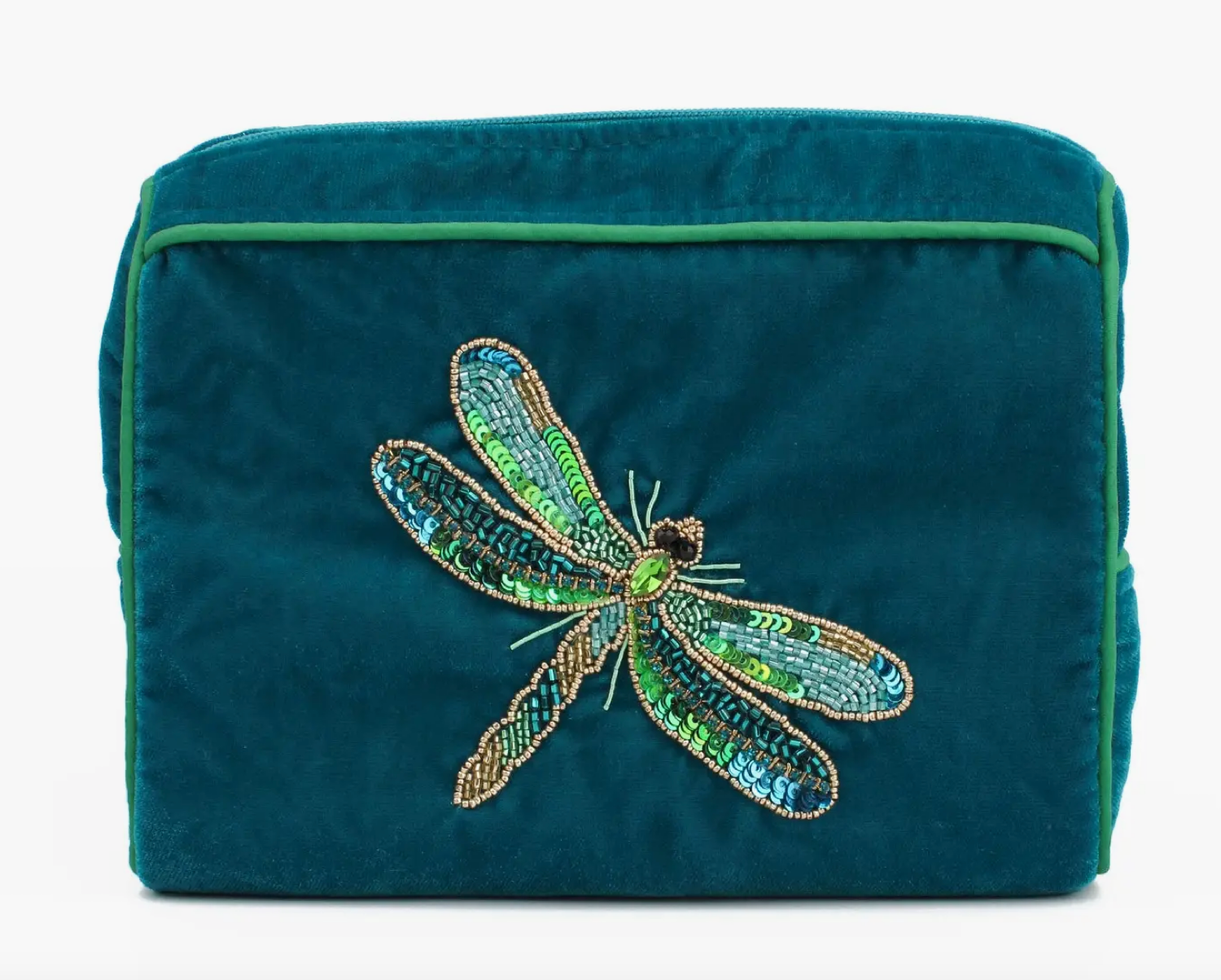 Add a touch of whimsy to your daily routine with our Beaded Blue Dragonfly Medium Pouch. This handcrafted pouch, made with soft velvet and adorned with a dazzling dragonfly design, is perfect for holding all your essentials. With a water resistant lining and glass bead embellishments, it's both practical and beautiful. Approximately 180 x 130mm in size, it's the perfect accessory for any occasion.