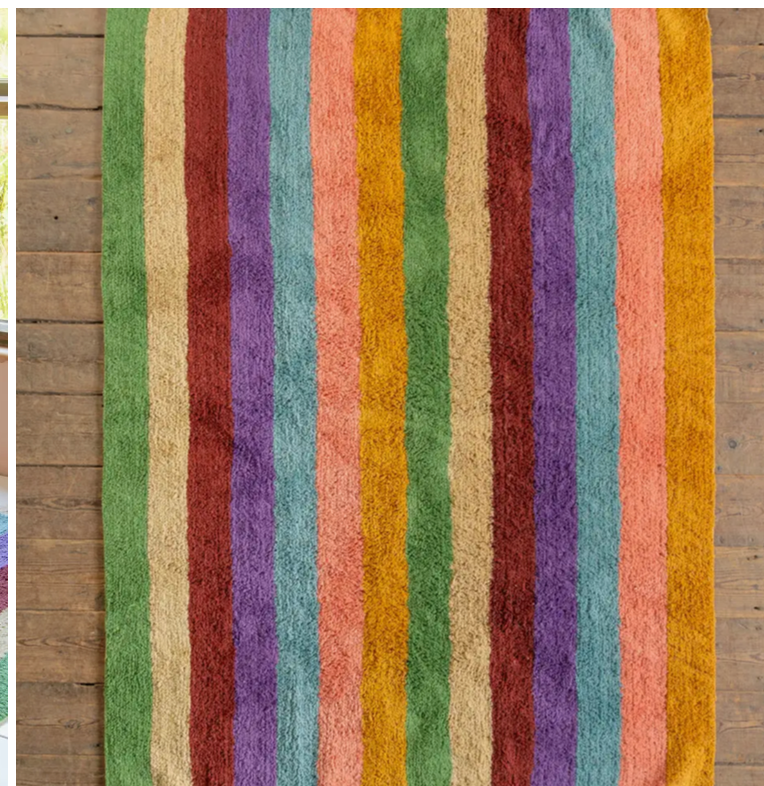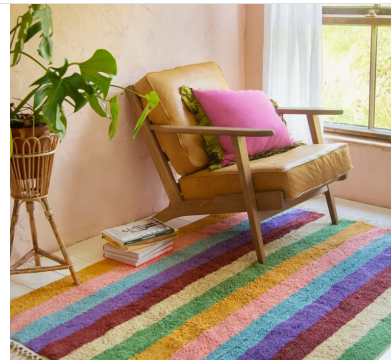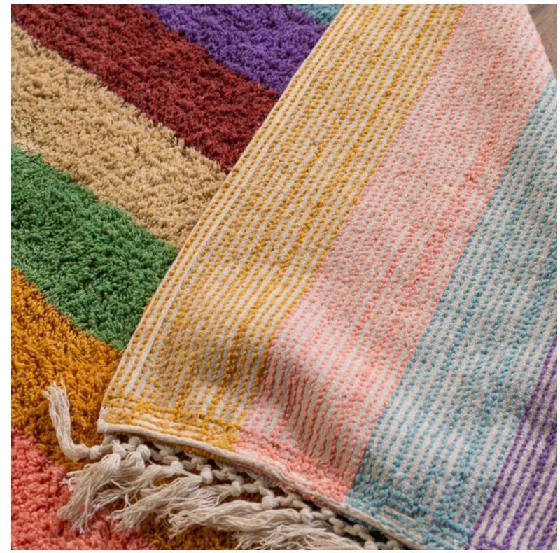 Bring a splash of retro charm to your space with the Beryl Striped Recycled Cotton Rug. Crafted from recycled cotton fabric and tufted for a soft, textured feel, this rug features wide stripes in playful vintage tones. Finished with knotted fringes at each end, it adds a fun, lively touch to any room while being kind to the planet.