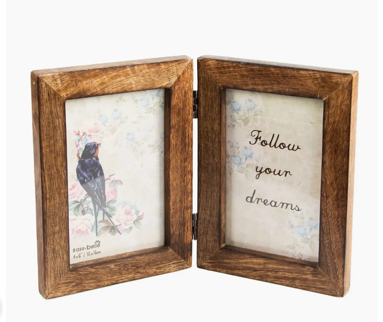Display your favourite memories side by side in this charming double portrait frame. Crafted from rich, dark-stained wood, it brings a touch of warmth and sophistication to any room. The rectangular design elegantly showcases two photos, making it perfect for capturing special moments together—whether that's you and your bestie, your furry friend, or those golden memories you can't bear to choose between. A timeless piece that lets your pictures do the talking.