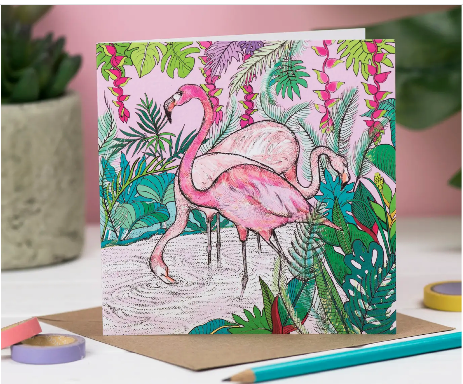 Celebrate life's special moments with this charming greeting card, beautifully illustrated by wildlife artist Fay. Featuring vibrant flamingos rendered in her signature style, this card brings a splash of colour and personality to any occasion. Perfect for birthdays, congratulations, or simply brightening someone's day, it's a delightful choice for those who appreciate nature-inspired design and artistic flair.