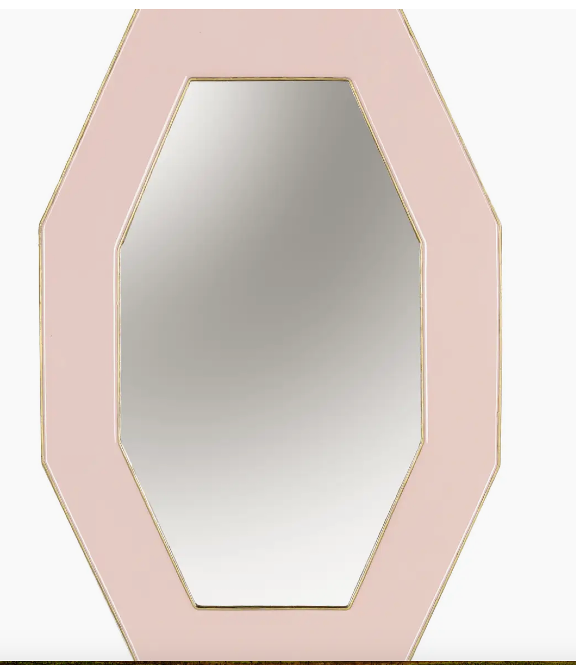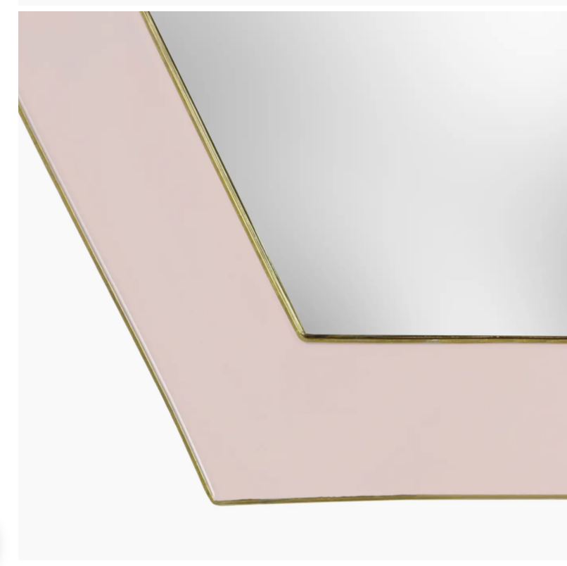 Add a touch of modern charm to your home with our Framed Octagonal Wall Mirror. The slim, art deco inspired design is accentuated by a blush pink enamel frame and luxe brass finish. A perfect blend of style and functionality for any space.