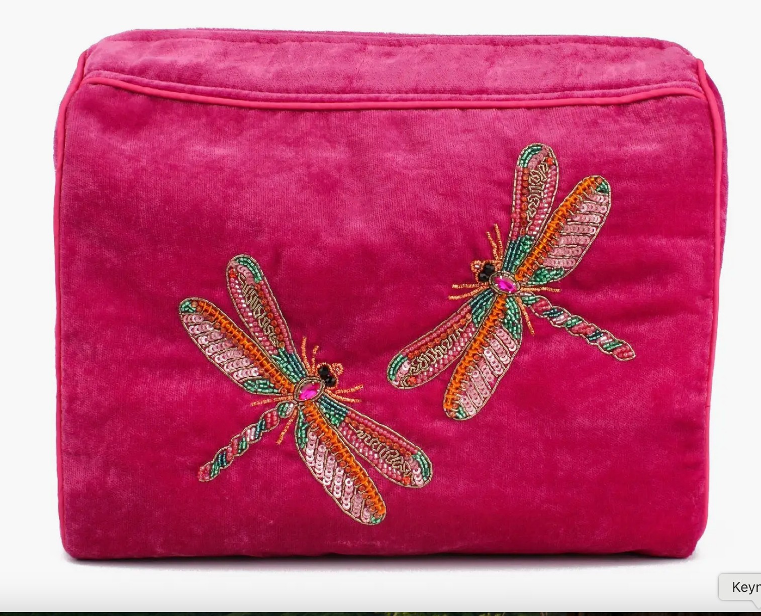 Spruce up your storage game with our Pink Dragonfly Large Pouch. Handcrafted by skilled artisans in India, the 100% polyester velvet material and water resistant lining make this pouch both durable and stylish. The dazzling dragonfly design and playful deep pink shade add a touch of whimsy to your organization. Approximately 250 x 180mm with a 100mm gusset, this pouch is the perfect size for all your storage needs.