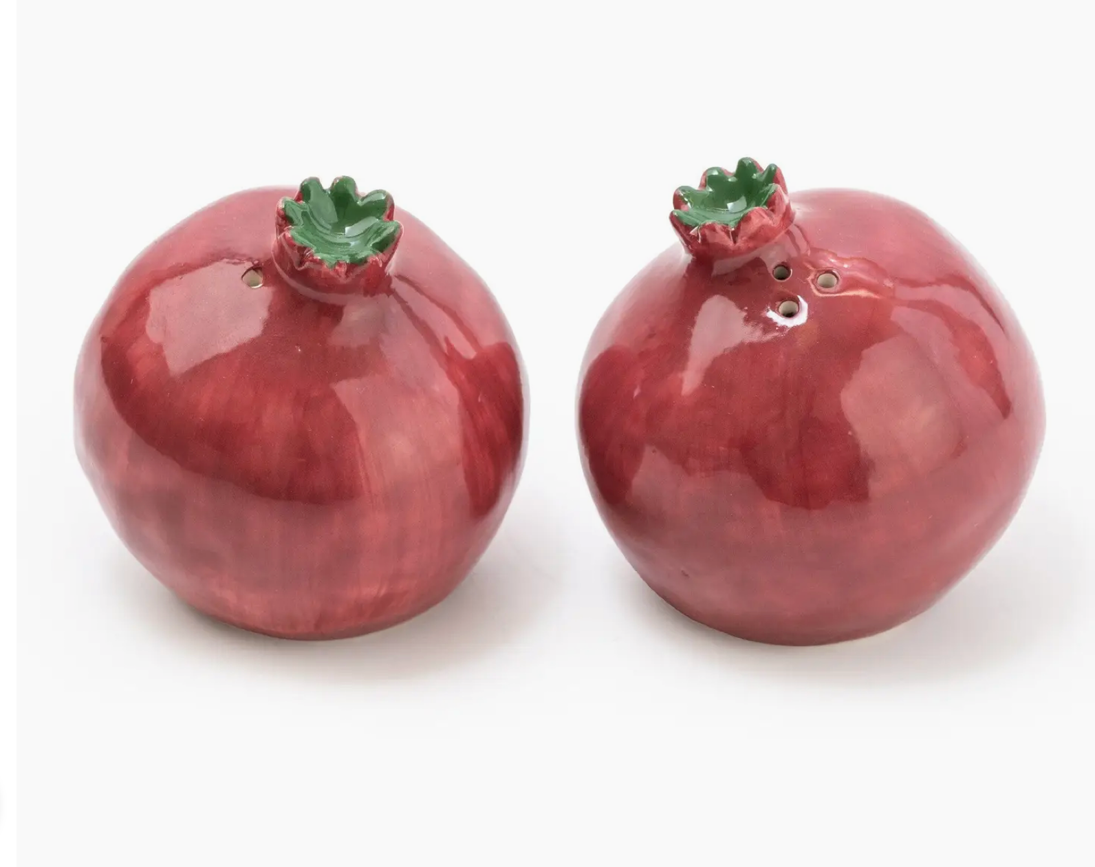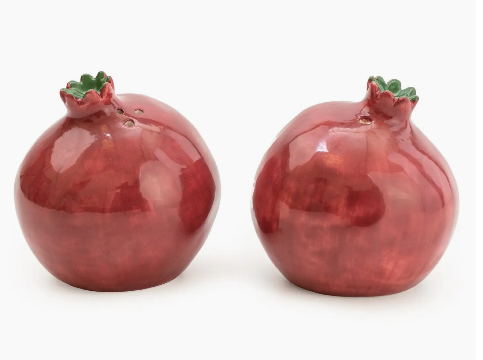 Add a splash of fun to your dining with these playful pomegranate-shaped salt and pepper shakers. Crafted from glazed ceramic, they bring a charming touch of Persian-inspired design to your table while keeping your seasonings close at hand. Perfect for brightening up any meal!