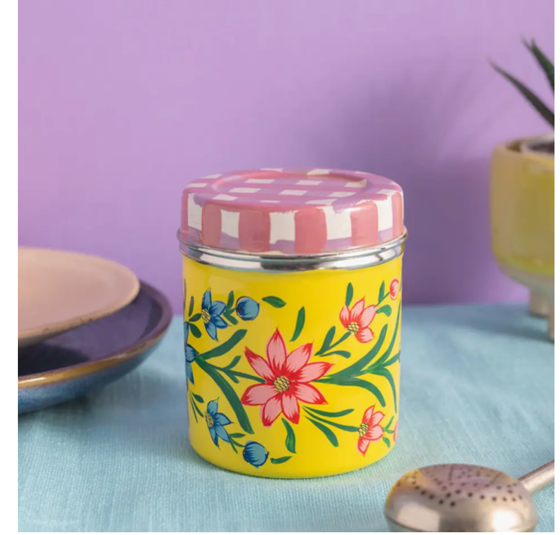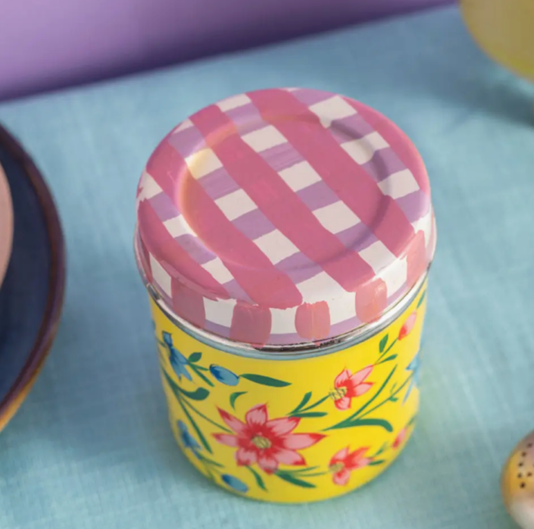 Add a touch of whimsy to your kitchen with these delightful stainless steel spice tins, each hand painted with charming floral designs. Topped with gingham lids in soft, complementary hues, they bring a cozy country cottage vibe to your spice rack. Perfect for brightening up your cooking space while keeping your spices fresh and organized.