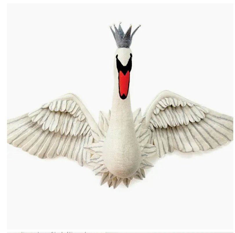 Add a touch of whimsical charm to your space with the Swan Head Fully Winged. The exquisite needle-felted details and delicate appliquéd feathers bring this gorgeous Odette to life almost life-sized. Made with organic wool fibers, this realistic and unique piece is perfect for any animal lover.