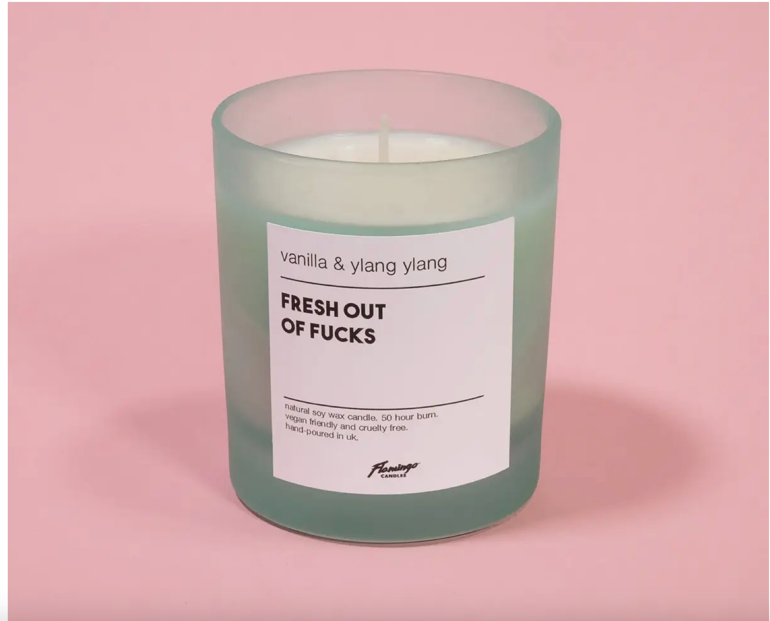 Vanilla & Ylang Ylang Fresh Out of Fucks Frosted Green Jar Candle
